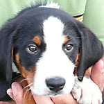 Kind und Welpen