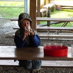 Kind und Welpen
