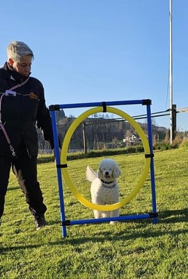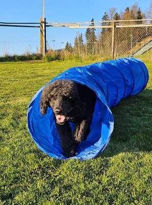 Kind und Welpen