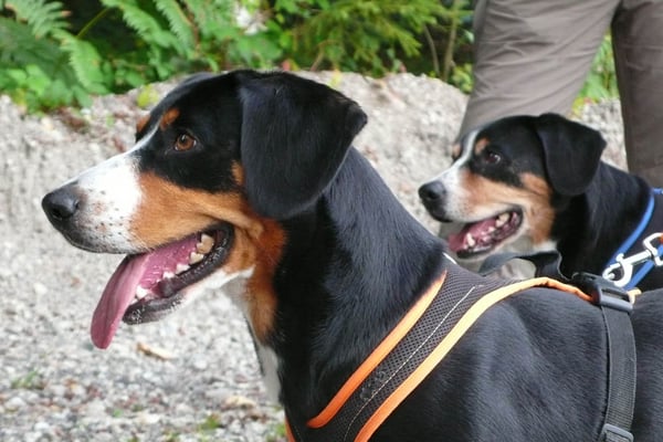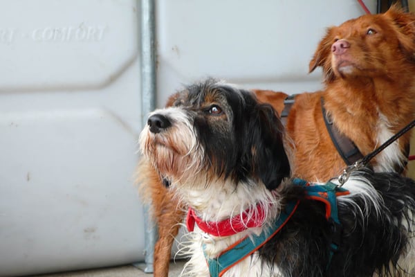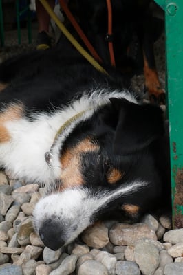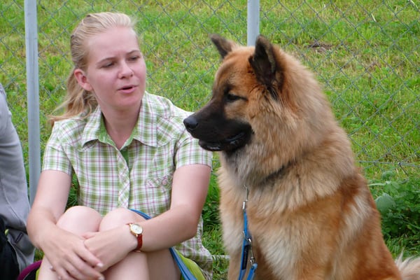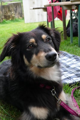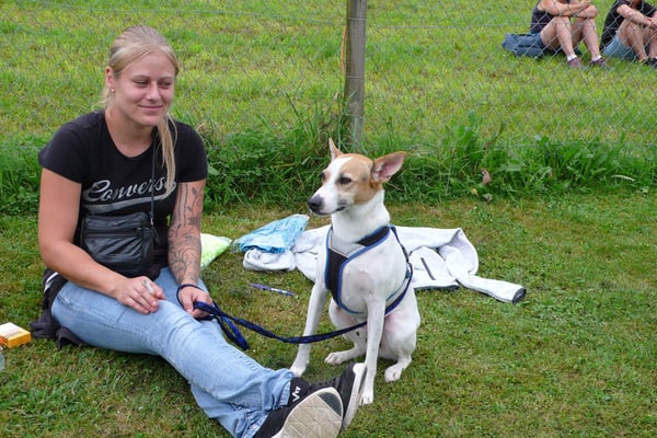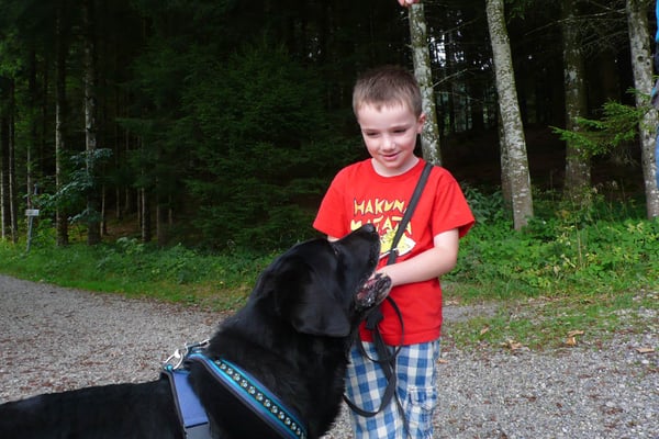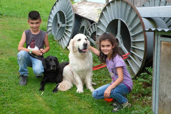 Kind und Welpen