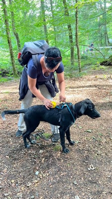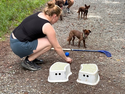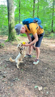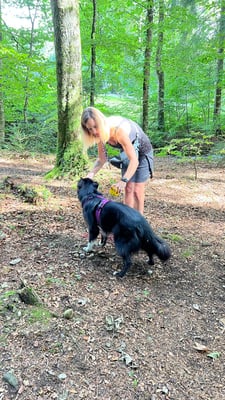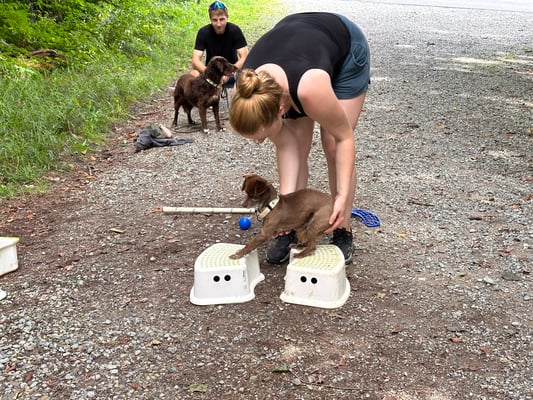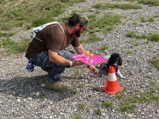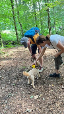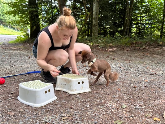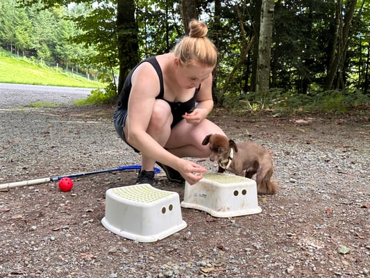 Kind und Welpen